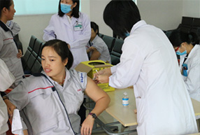 为确保职工身体安全,公司每年邀请正规医院医生来社对职工身体安全进行检查、疫苗注射,以追求职工身体安全健康。